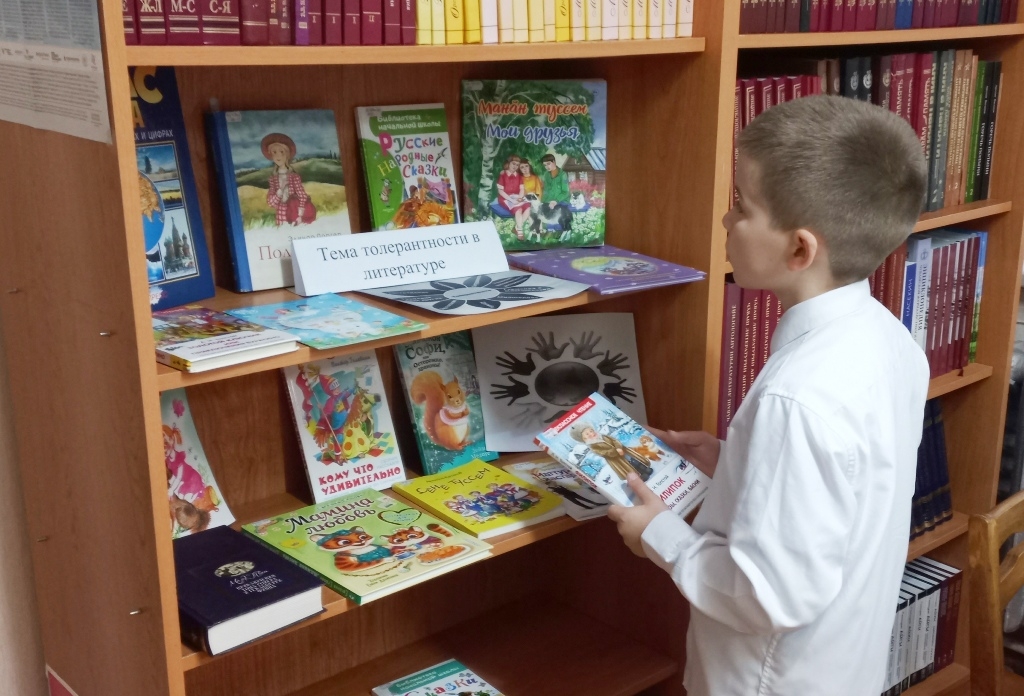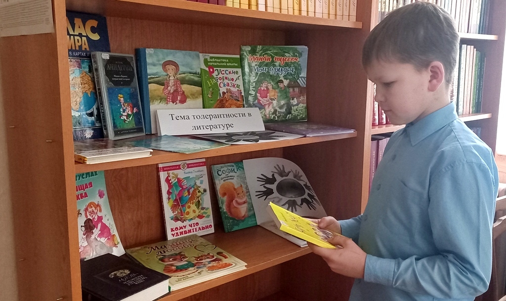 На книжной выставке «Тема толерантности в литературе» перед читателями предстала сокровищница мудрости и человечности, призывающая к миру и согласию.