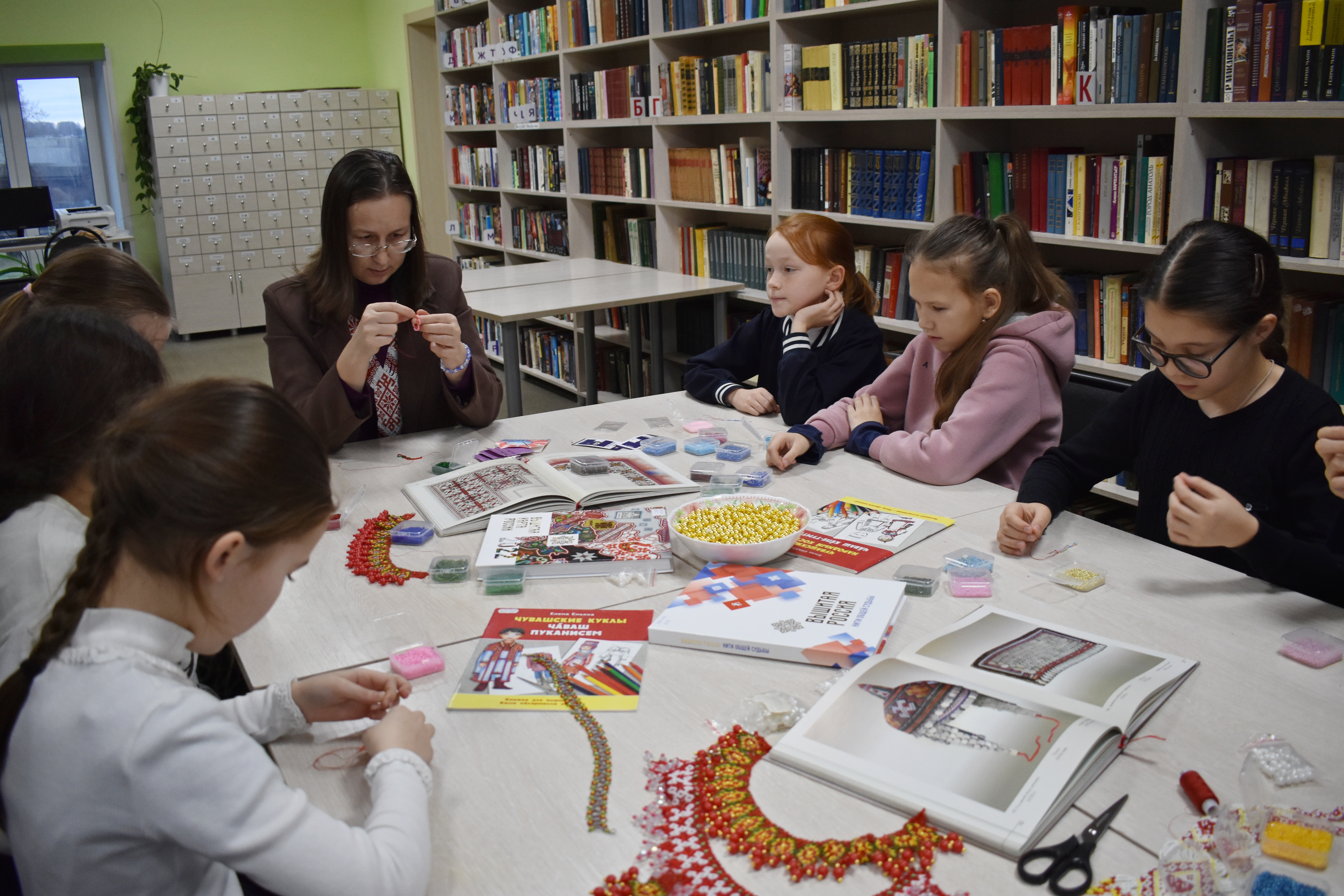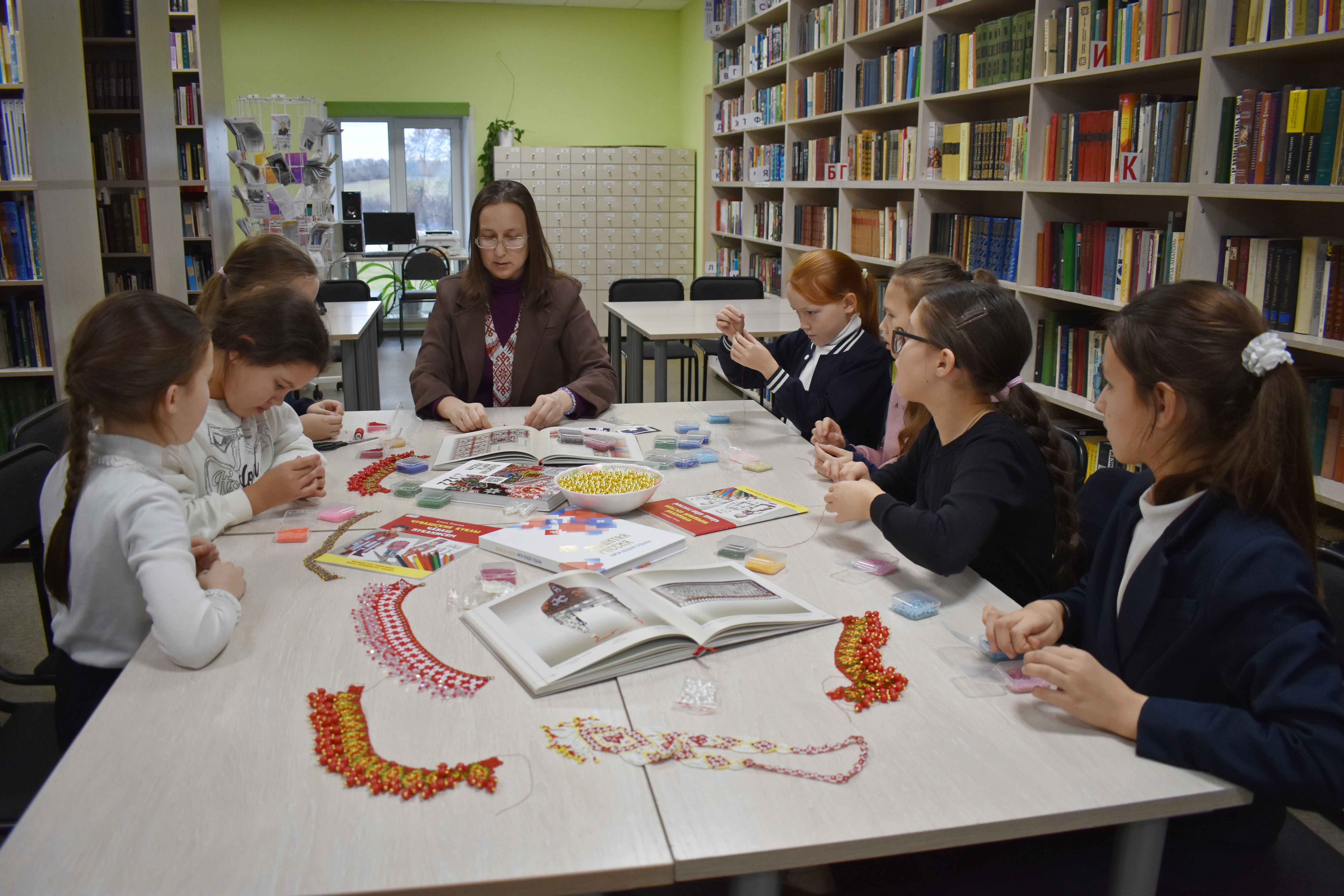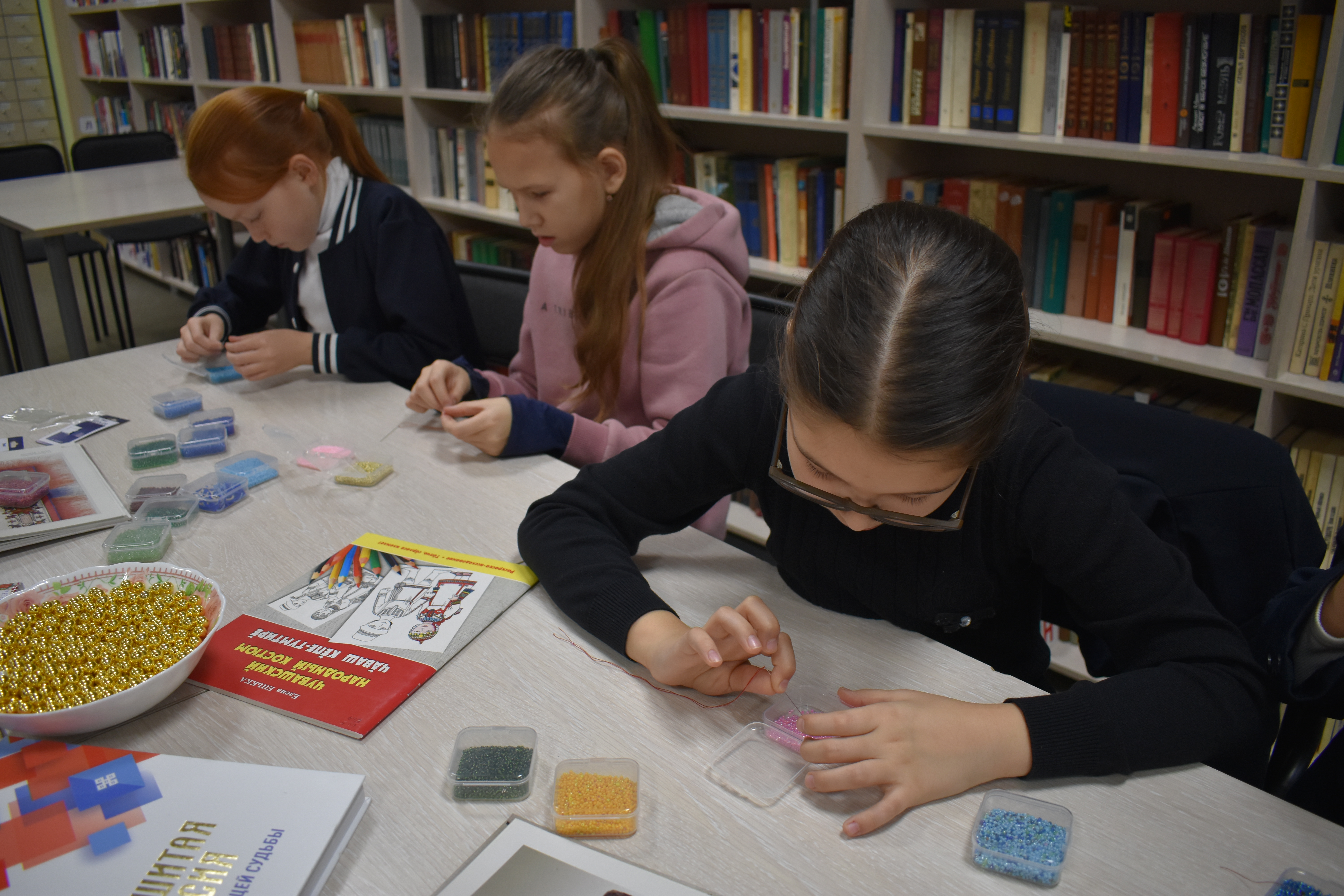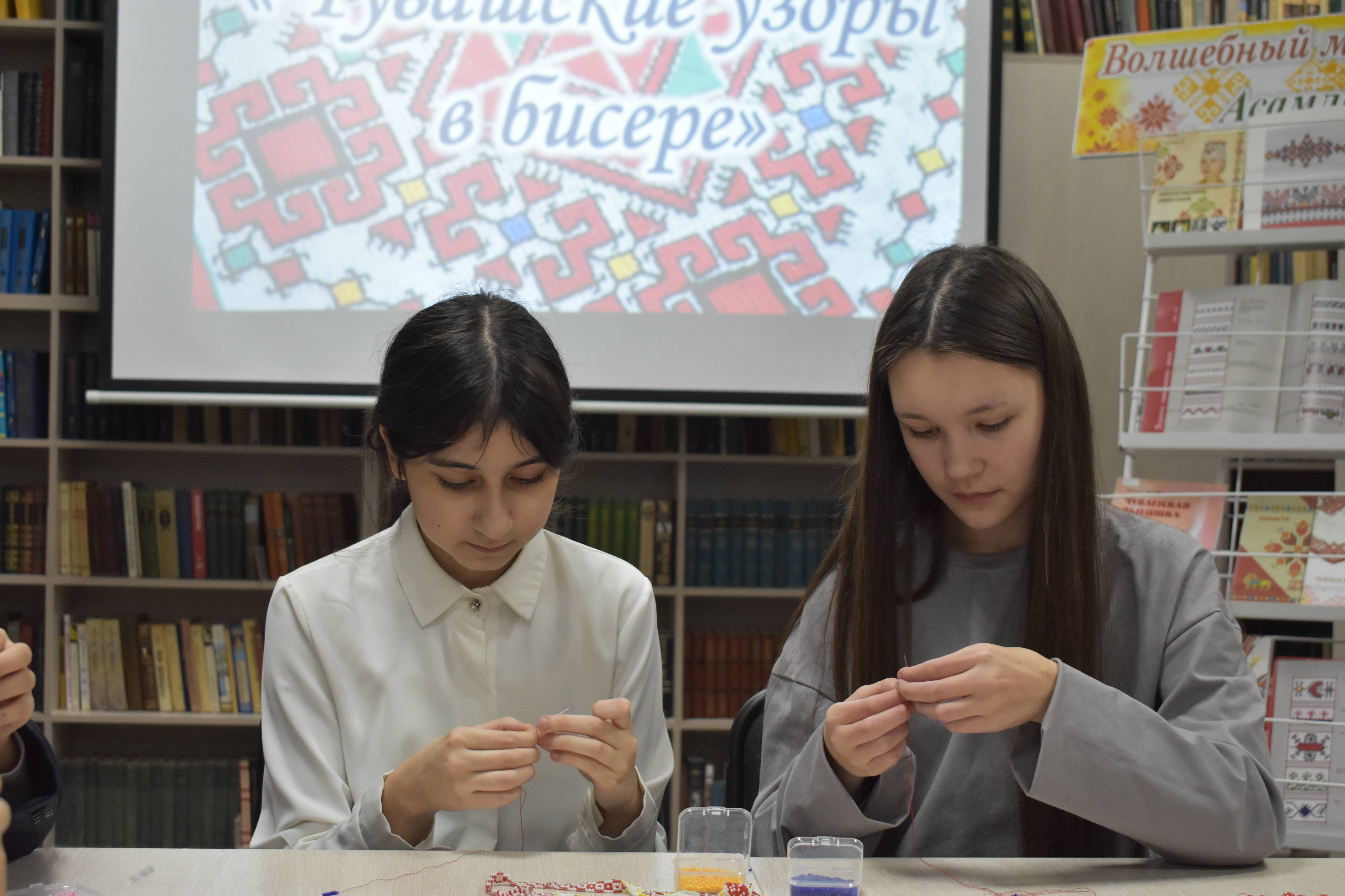 В преддверии праздника в Центральной библиотеке Моргаушского муниципального округа состоялся мастер-класс «Чувашские узоры в бисере» для юных мастериц. Под руководством библиотекарей девочки погрузились в историю древнего ремесла. Присутствующие узнали, как бисер столетиями украшал головные и нагрудные уборы девушек: хушпу, тухья, масмак, ама, мăй çыххи, тевет.