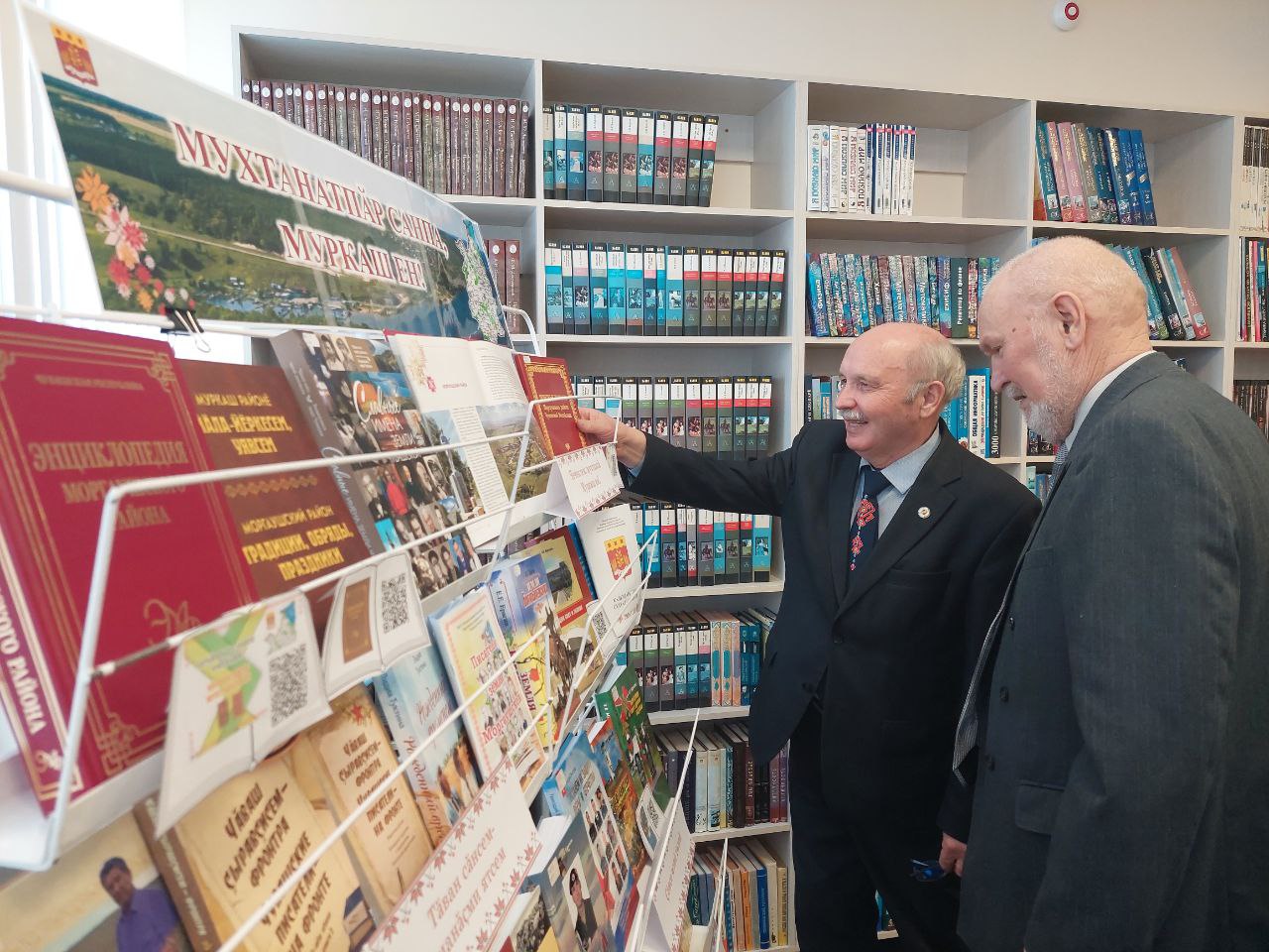Вниманию гостей праздника были представлены лучшие книги из фонда библиотеки: «Энциклопедия Моргаушского района», «Почетные граждане Моргаушского района Чувашской Республики», «Афганистан в судьбах моргаушцев» В.В. Мартынова, «Герой Советского Союза Илья Григорьевич Мешаков» Ефимова Л.А., «Учитель – это призвание» Тимофеевой Е.В., «Акрамовская волость в истории Чувашии» Васильева Г.Л. А также книги о знаменитых людях Моргаушского края, об истории района и отдельных деревень, о традициях и обычаях, о писателях и краеведах нашего района, а также выпущенные библиотекой информационные буклеты и брошюры.